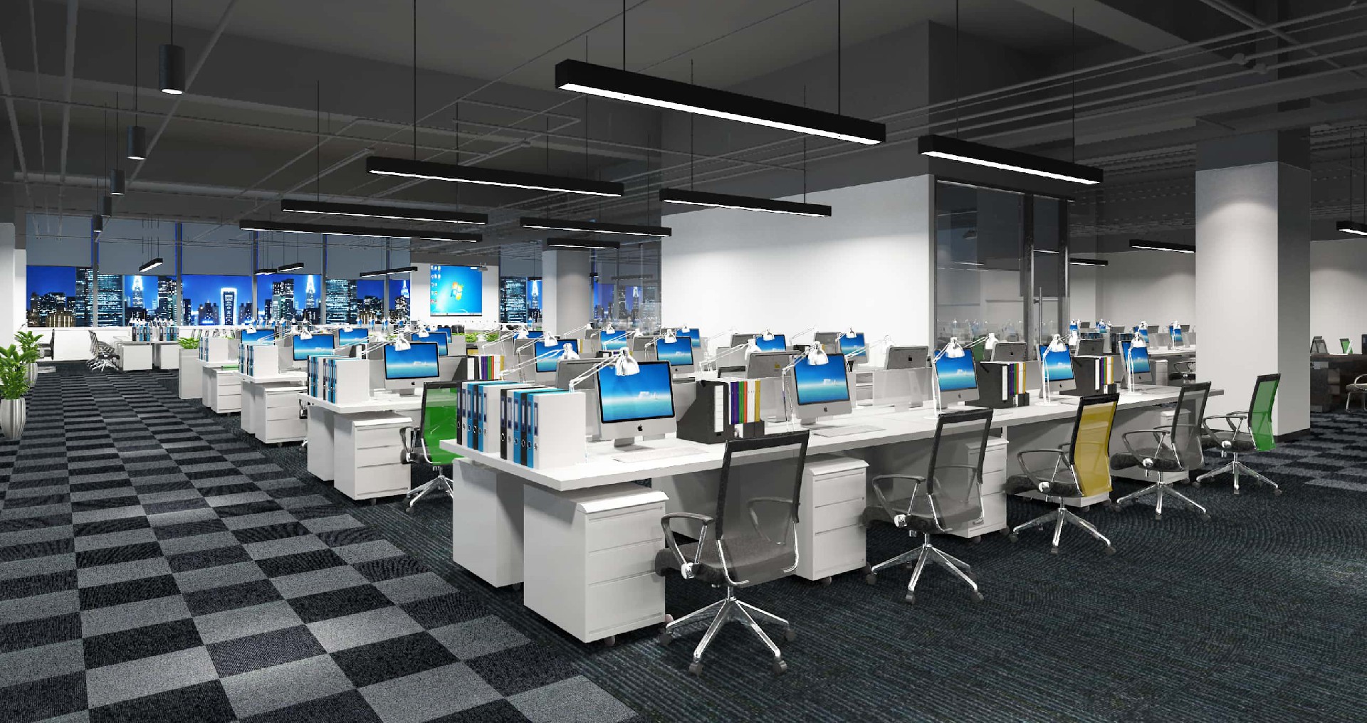 整体空间通过合理的色彩搭配与布局,营造出舒适、高效的办公环境,既展现了企业的专业形象,又为员工提供了一个宽敞明亮、富有活力的工作场所。